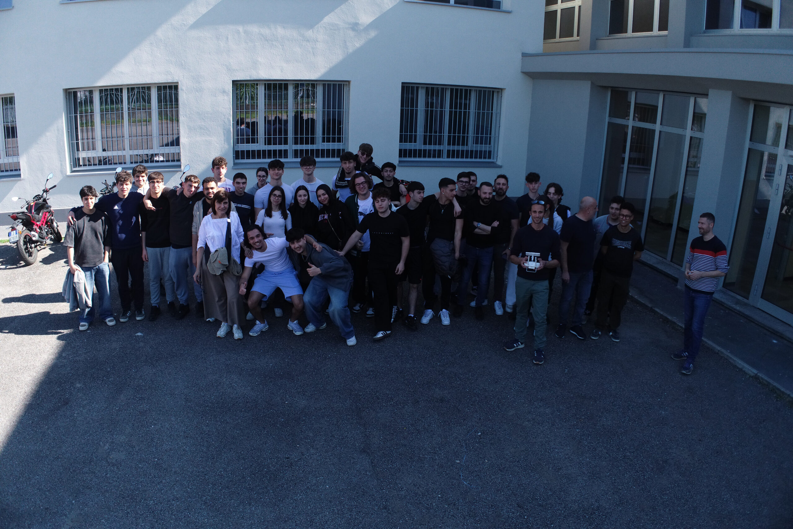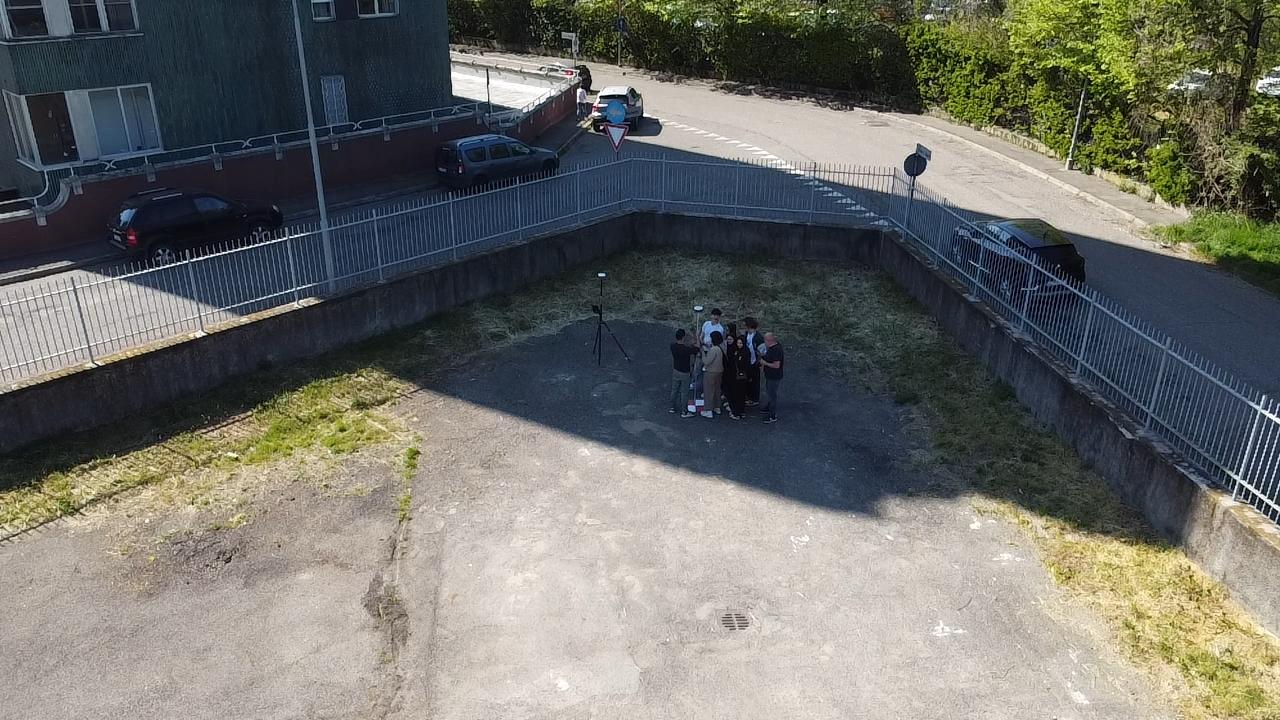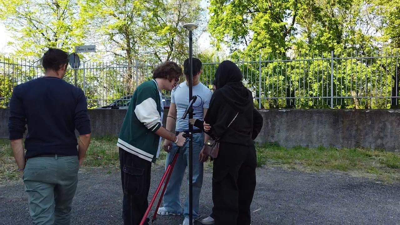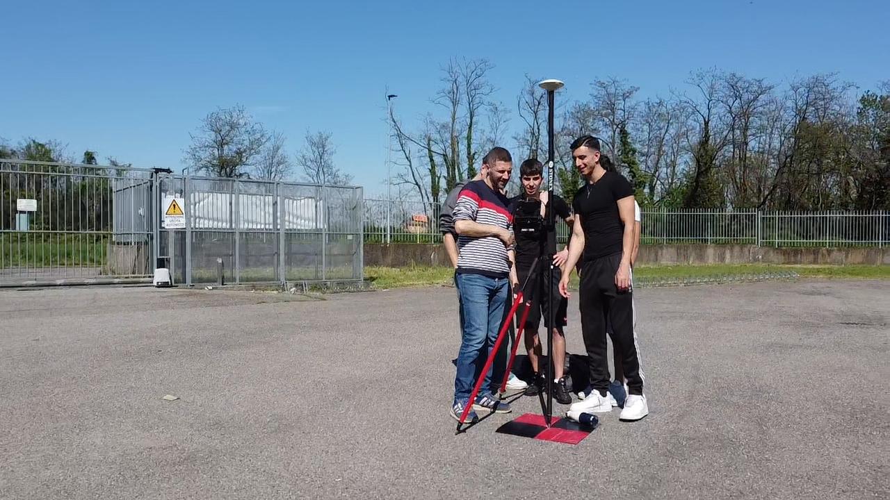 Durante la prima giornata, dopo un ripasso teorico e la simulazione del piano di volo, i ragazzi sono passati all’operatività sul campo per rilevare la copertura del nostro istituto. L’esercitazione ha previsto il posizionamento dei target a terra e il loro rilievo con strumentazione satellitare GNSS, prima di procedere al volo vero e proprio per l’acquisizione delle immagini.